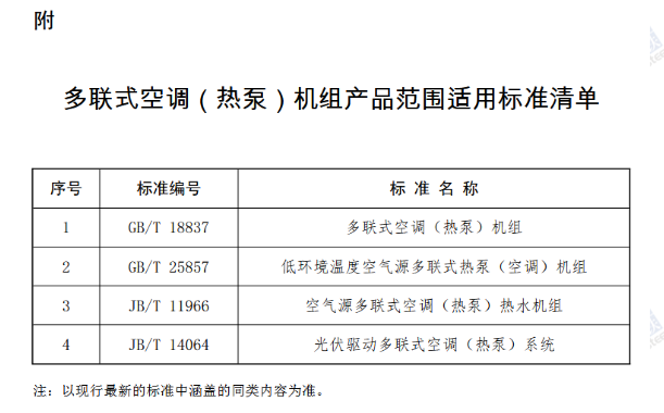 附:多联式空调(热泵)机组产品范围适用标准清单